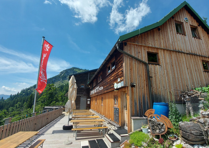 In der gemütlichen Gaststube mit Kachelofen und Panoramafenstern finden max. 54 Personen Platz und auf der Sonnenterrasse mit urigen Massivholzbänken können 80 Personen Platz nehmen.Geniessen Sie das einzigartige Panorama mit Blick auf das Tote Gebirge.Im Jahr 2025 wurden unsere Schlafräume und Zimmer generalsaniert und dadurch können wir 2 Zweibettzimmer und 4 Mehrbettzimmer für insgesamt 25 Personen anbieten.Die Verwendung eines Hüttenschlafsack betrachten wir als selbstverständlich auf einer Schutzhütte.